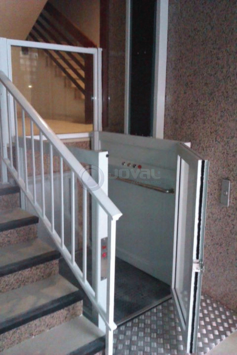 JOVAL Accesibilidad realiza una nueva instalación de plataforma salvaescaleras en Valencia. Instalación de plataforma salvaescaleras vertical realizada en una comunidad de propietarios en Valencia capital.