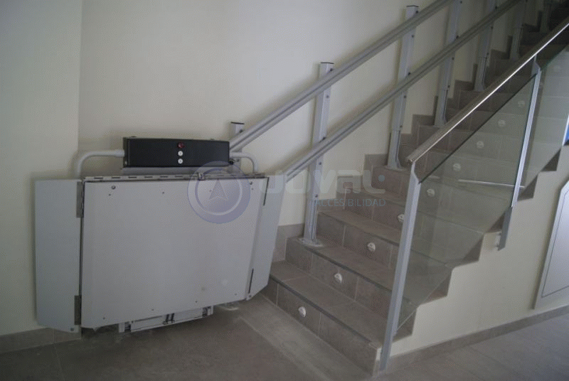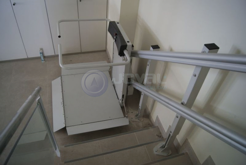 JOVAL Accesibilidad realiza instalación de plataforma salvaescaleras en Elche (ALICANTE). Instalación de plataforma salvaescaleras en oficinas de Seguros Santa Lucía de Elche.