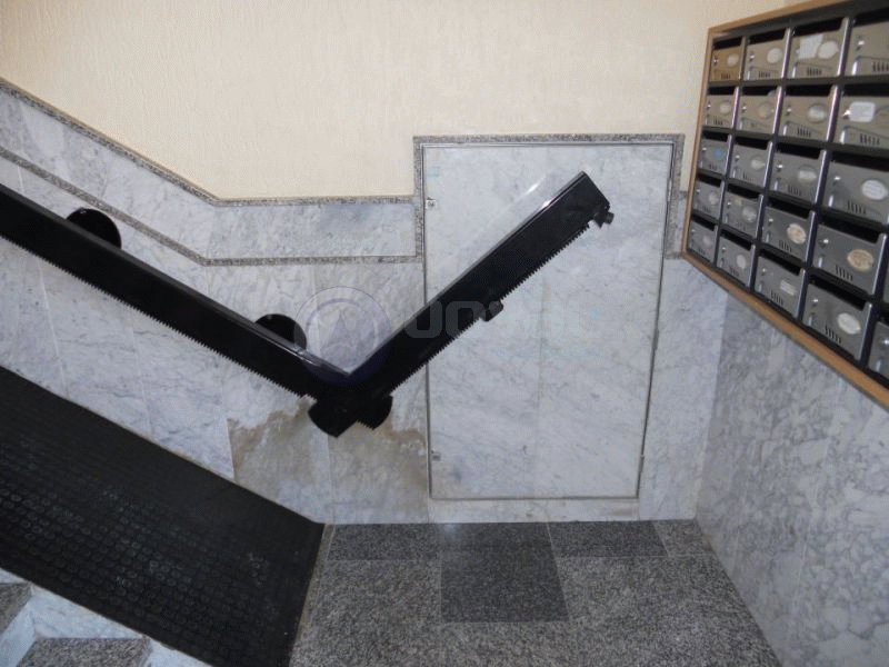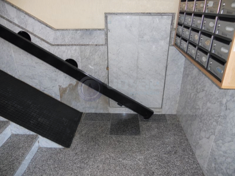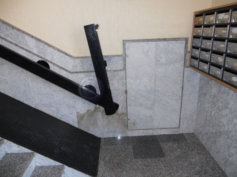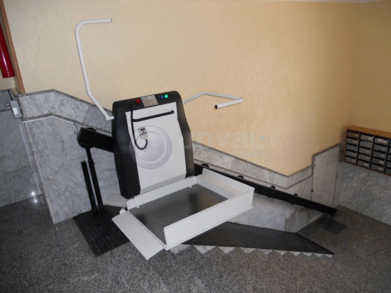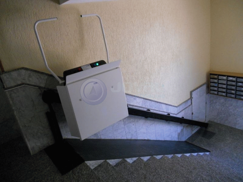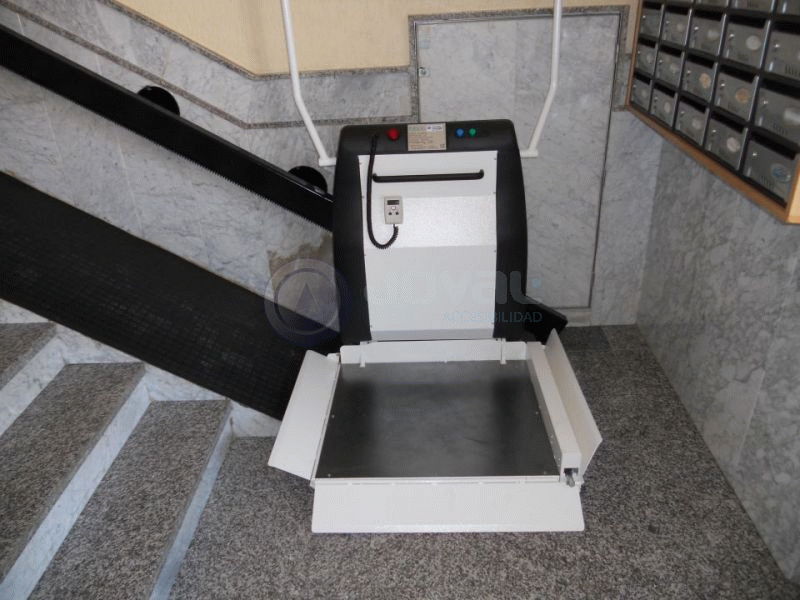 Nuestra mejor opción es ofertarle una plataforma salvaescaleras para instalar encima de la rampa ya que como no se le va a dar utilidad de este modo seguimos dejando de paso libre la totalidad de las escaleras. También le recomendamos hacer el carril con brazo abatible, ya que al final de la rampa tienen el cuadro eléctrico por lo que si instalásemos el carril fijo lo dejaríamos inservible, y de éste modo cuando se necesite el acceso a la puerta del cuadro eléctrico con el sistema del brazo abatible conseguimos dejarlo libre.