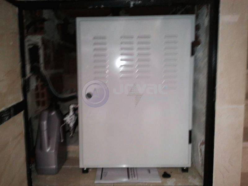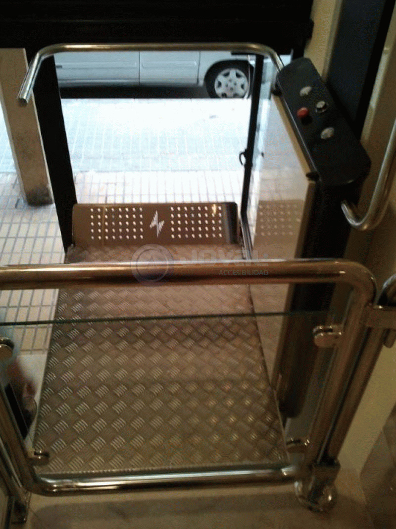 Tras varias semanas de fabricación de su plataforma salvaescaleras vertical, 24 horas más tarde queda totalmente instalada.